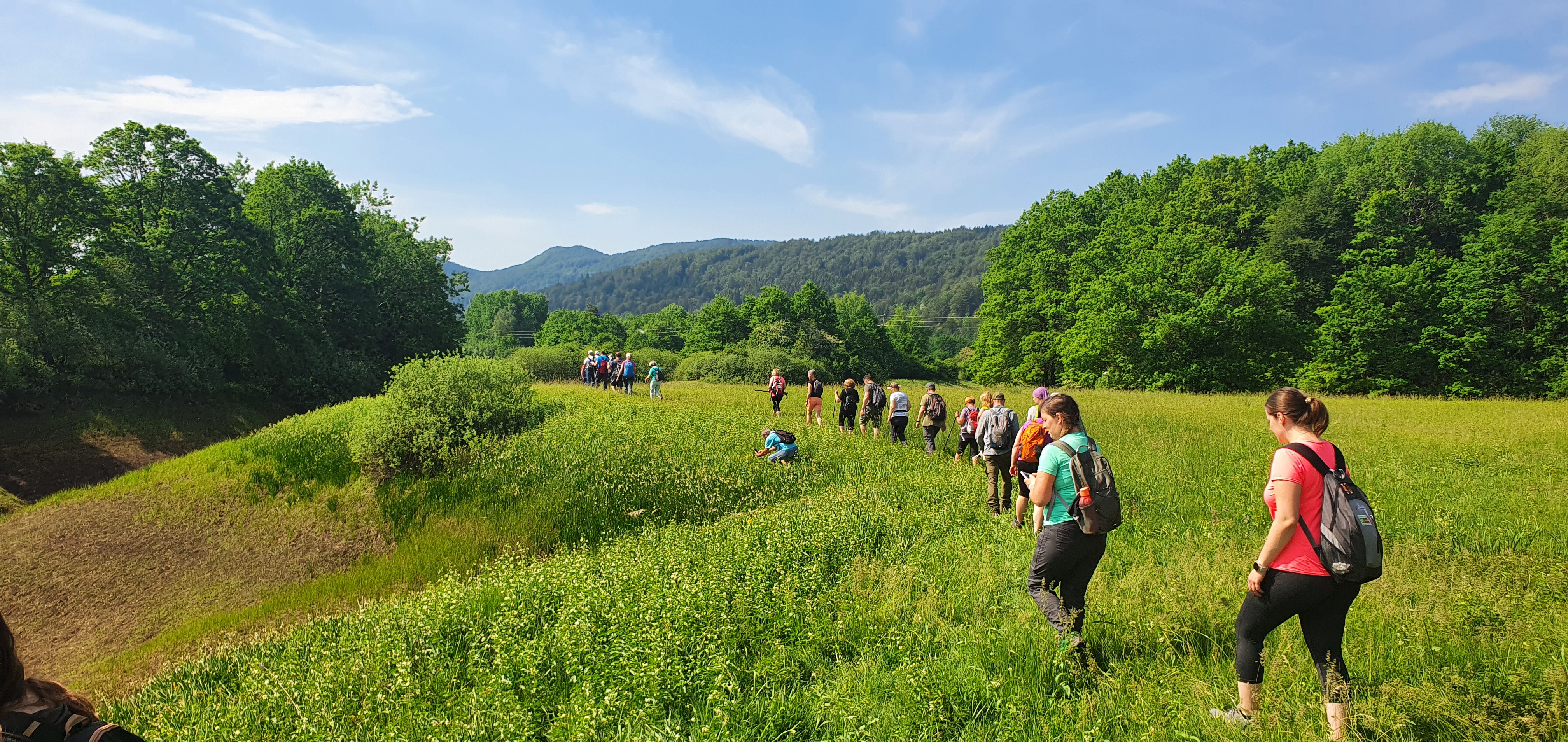 Le dan po konferenci, 21. maja, smo se v sodelovanju s Turističnim društvom Kopanj in pohodniki odpravili na že tradicionalni pohod po Krajinskem parku Radenskem polju. 8 km dolga pot je potekala od severne do južne točke Radenskega polja – od razvalin gradu Boštanj, mimo retja Srednjice, Močila, mimo osamelca Kopanj pa vse do Centra ohranjanja narave Žabje hiše na izviru vodotoka Šica. Na poti so nas spremljali cvetoči, z živalstvom bogati travniki, med katerimi so bile tudi zavarovane vrste – dvoživka hribski urh, metulj travniški postavnež ter simbol parka, sibirska perunika. Več o Krajinskem parku Radensko polje in pomenu dvoživk so obiskovalci lahko izvedeli ob zaključku pohoda pri Žabji hiši.