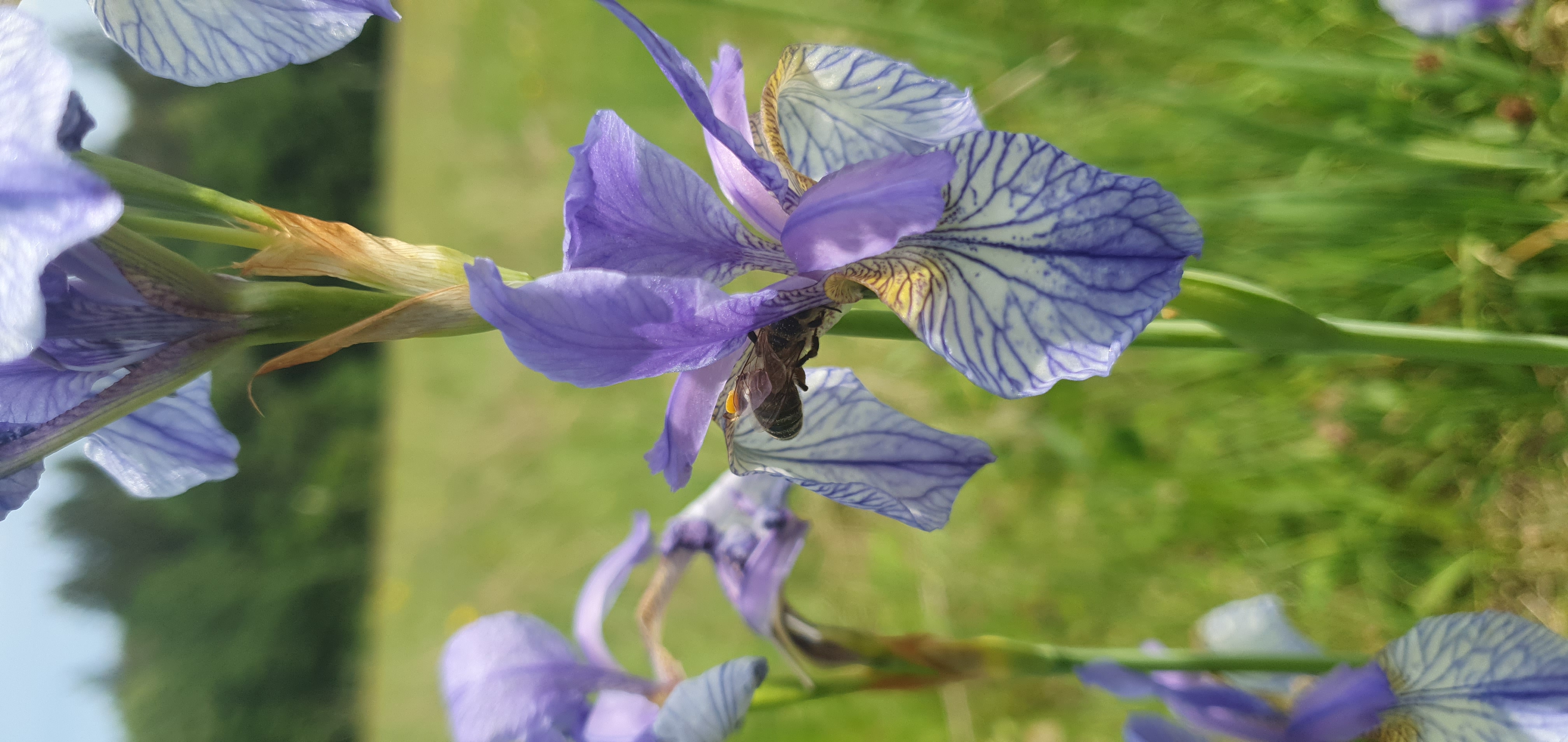Simbol Krajinskega parka Radensko polje, sibirska perunika, in opraševalci. (Avtor: Tina Stepišnik)