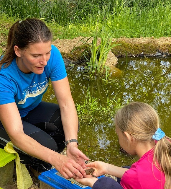 Predstavitev projekta LIFE AMPHICON in dvoživk pri Žabji hiši, centru ohranjanja narave v Mali Račni. (Avtor: Polonca Pulko)